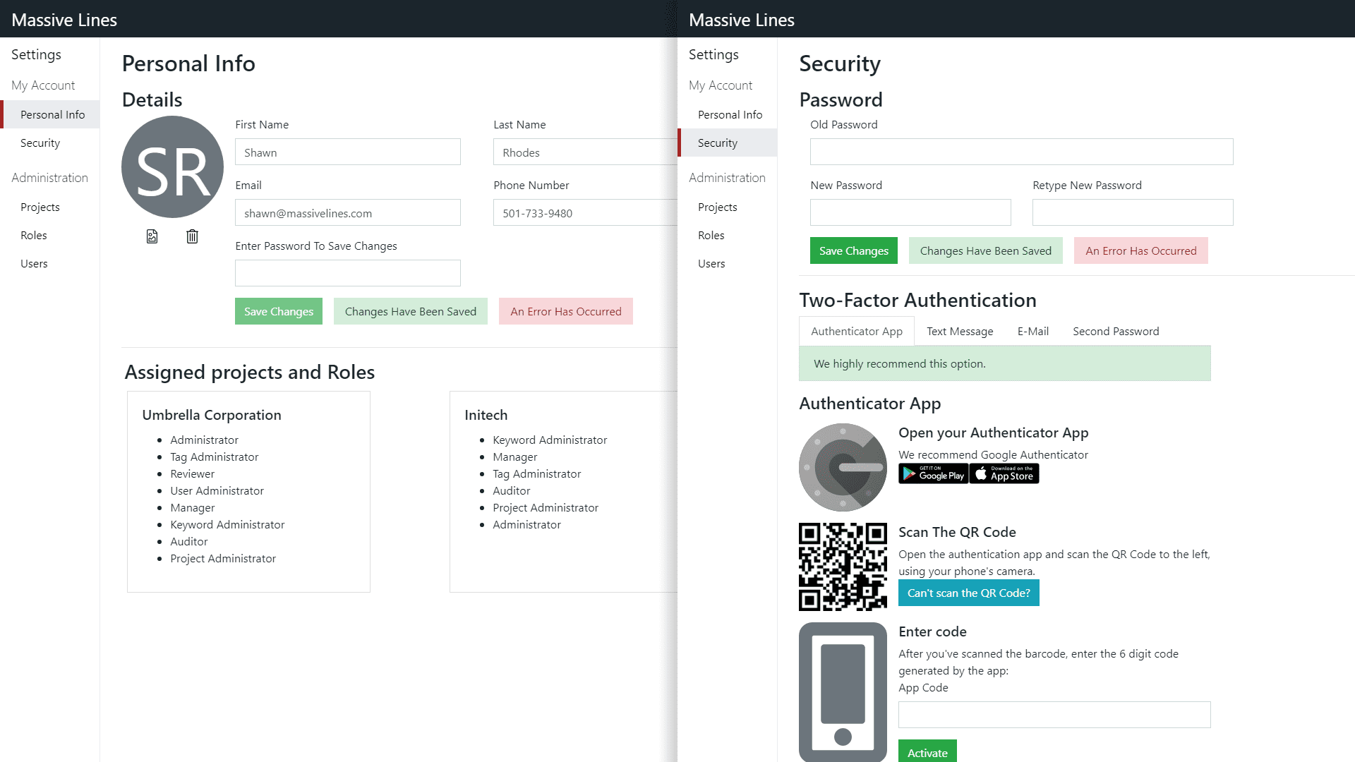 Users were also able to control what type of two-factor authorization setup they wanted to use and their own account details.